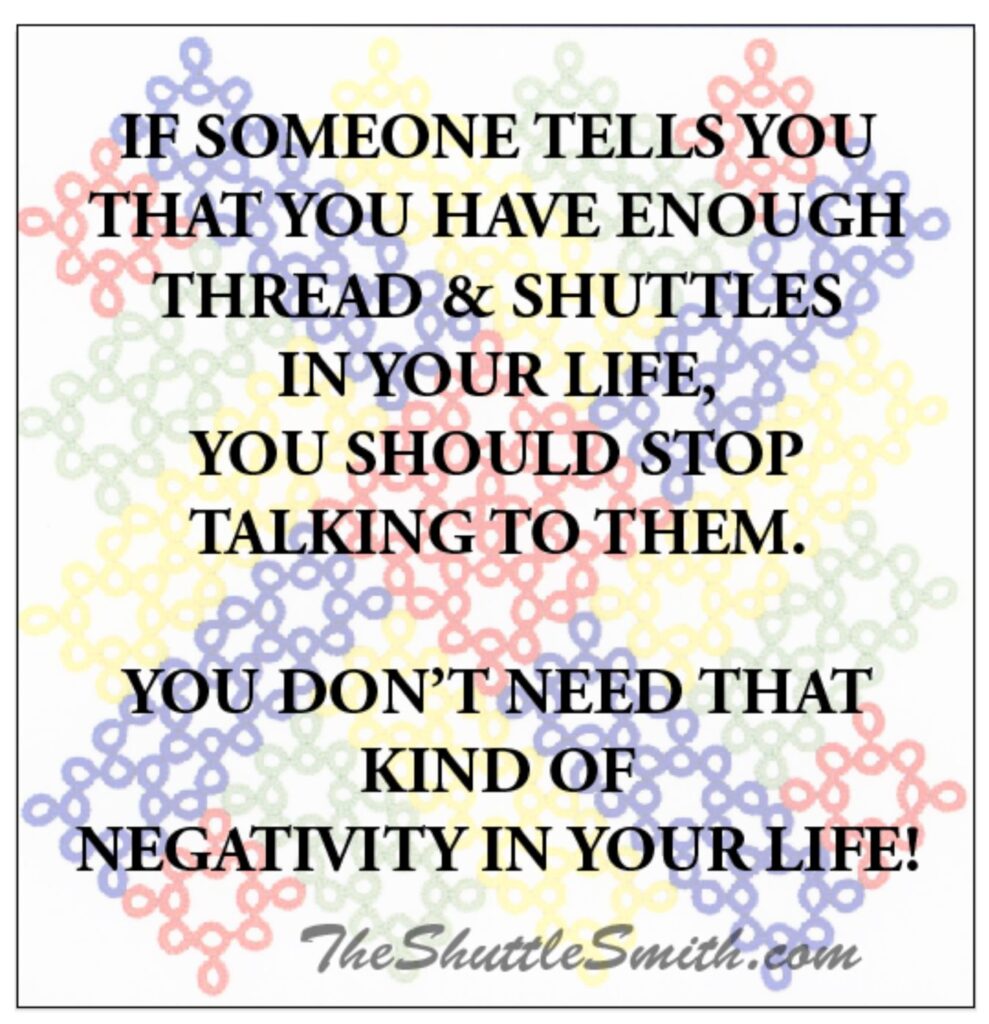 In the past, it was a popular belief that the definition of ‘TATTING’ was that the stitches were transferred. (However, that brings us to a different question regarding Split Ring Tatting Technique!!! We can tackle that question at a different time.)