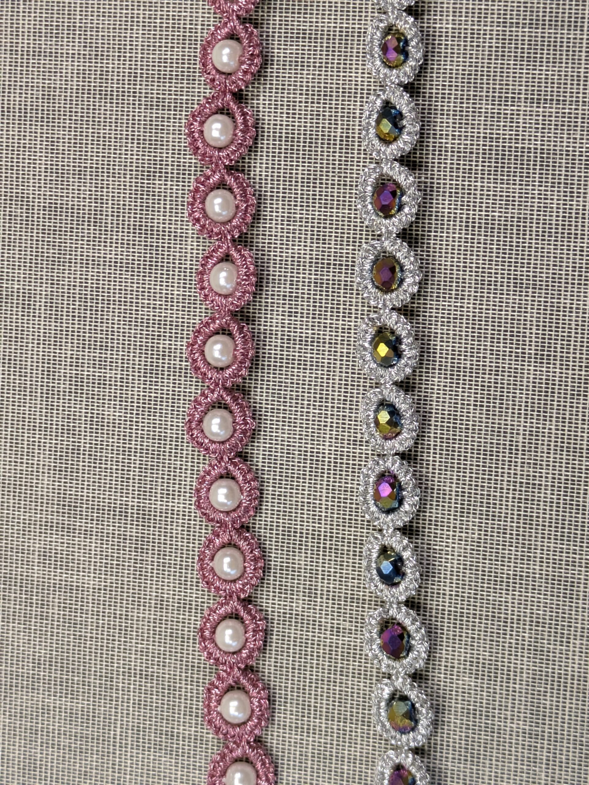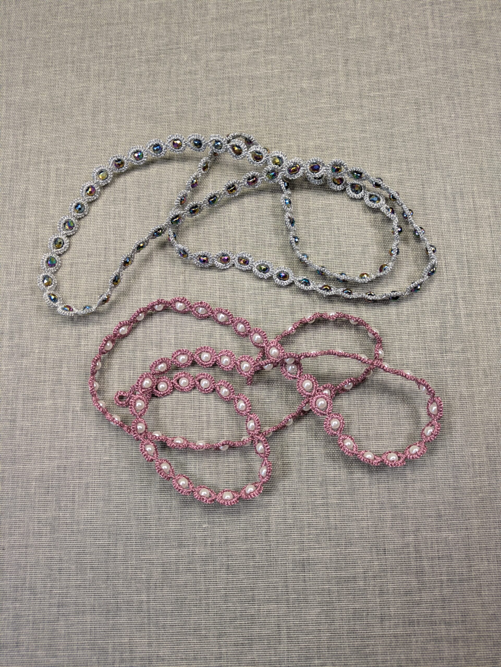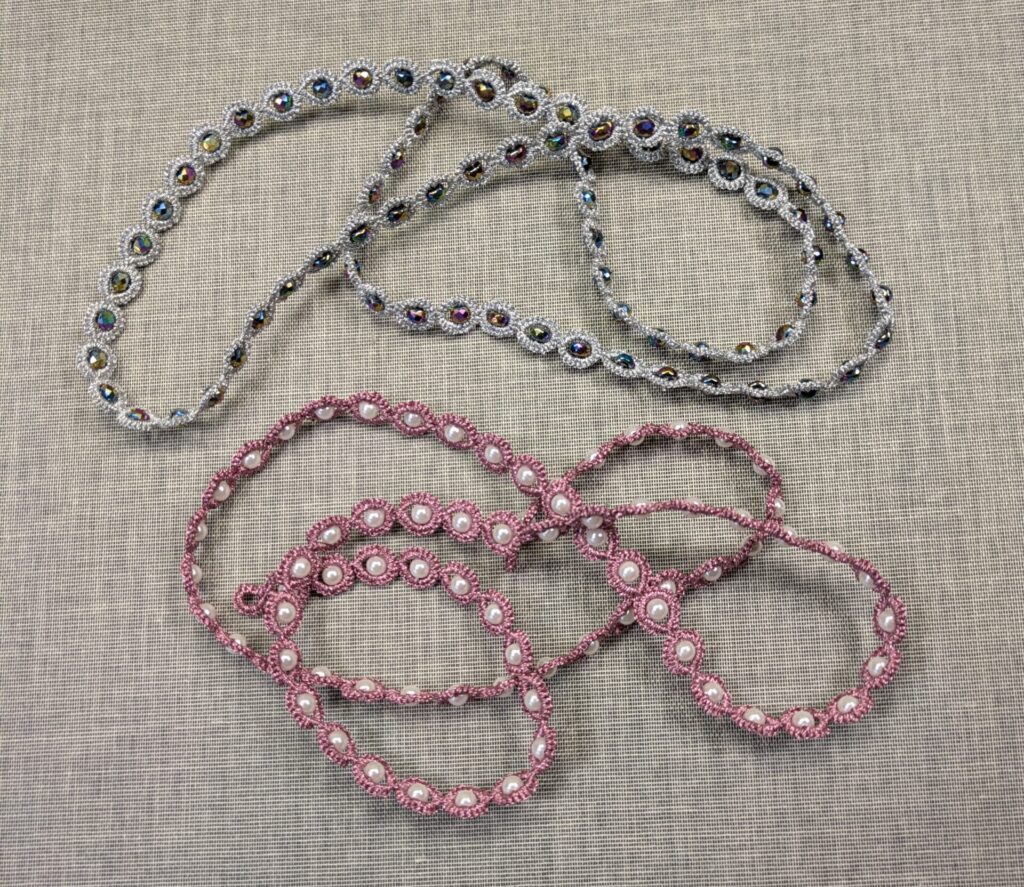 - Due to my vow to wear more tatting in public, I have been making these simple tatted/beaded necklaces.